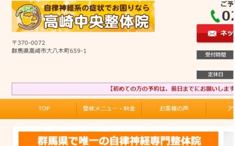 【群馬県高崎市大八木町659-1】群馬・高崎の整体 【国家資格あり】 高崎中央整体院 不調の再発まで予防できる人気の整体院