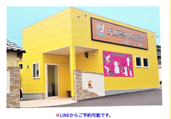 【島根県江津市】にある整体院です。 平成31年3月1日( 金 )から店舗を移転しました。 旧院からは100メートル離れた場所です。あさり亭さん前 店舗名も変更しました。 天療整体施術院としました。 天療とは、治療効果の高い「 天 」は自己治癒力「 療 」を上げる事を意味しています。 「 自己治癒力 」を上げることが最も大切です。 対症療法ではなく根本からよくする施術です。 浜田市・大田市など他市・県からも多くの方に来院して頂いています。 天療整体施術院は単なるリラクゼーションやマッサージだけではなく、整体、カイロプラクティック、ツボなどを使った施術をおこない「 腰痛 」「 坐骨神経 」「 肩こり 」「 首、頭痛 」「 膝痛 」 症状の改善を目的とした整体施術院です。 本来、体には自分で治す力( 自己治癒力 )があります。 骨盤、自律神経、内臓、筋肉、脊椎、血液、リンパ節( 六大リンパ調整 )などを、調整することで自己治癒力をあげ症状が軽減してしていきます。 検査とカウンセリングから身体の問題の原因を見つけ出し、症状にあわせ、年齢を考慮した安全かつ丁寧な施術を行っています。 子どもさんからご年配の方まで安心していらしていただける整体施術院を心がけています。