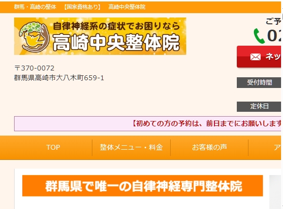【群馬県高崎市大八木町659-1】群馬・高崎の整体 【国家資格あり】 高崎中央整体院 不調の再発まで予防できる人気の整体院