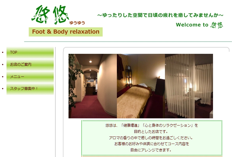 【神奈川県川崎市】悠悠は、「健康増進」「心と身体のリラクゼーション」を目的としたお店です。
