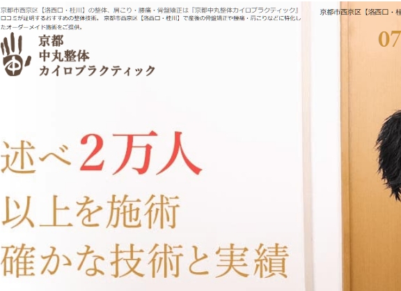 【京都府京都市】京都市西京区【洛西口・桂川】の整体、肩こり・腰痛・骨盤矯正は『京都中丸整体カイロプラクティック』 口コミが証明するおすすめの整体技術。 京都市西京区【洛西口・桂川】で産後の骨盤矯正や腰痛・肩こりなどに特化したオーダーメイド施術をご提供。