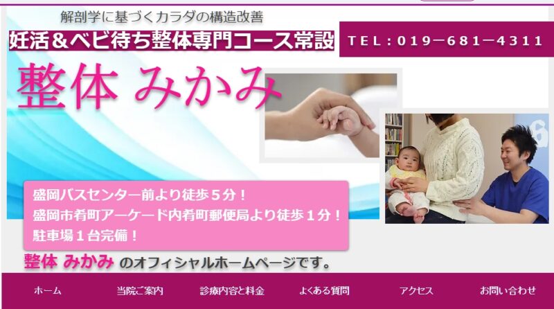 【岩手県盛岡市肴町8-12アーバン肴町1F】 妊活&ベビ待ち整体専門コース常設