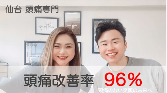 仙台市一番町にある病院でも治らない頭痛専門。頭痛改善率96%の確かな技術と実績で、あなたの頭痛の根本原因にアプローチ。薬を飲んでも、どこにいってもよくならないと頭痛を諦めていませんか?頭痛の原因と治し方が分かります。頭痛は治らないと諦めずに、本気で頭痛を治していきいましょう!